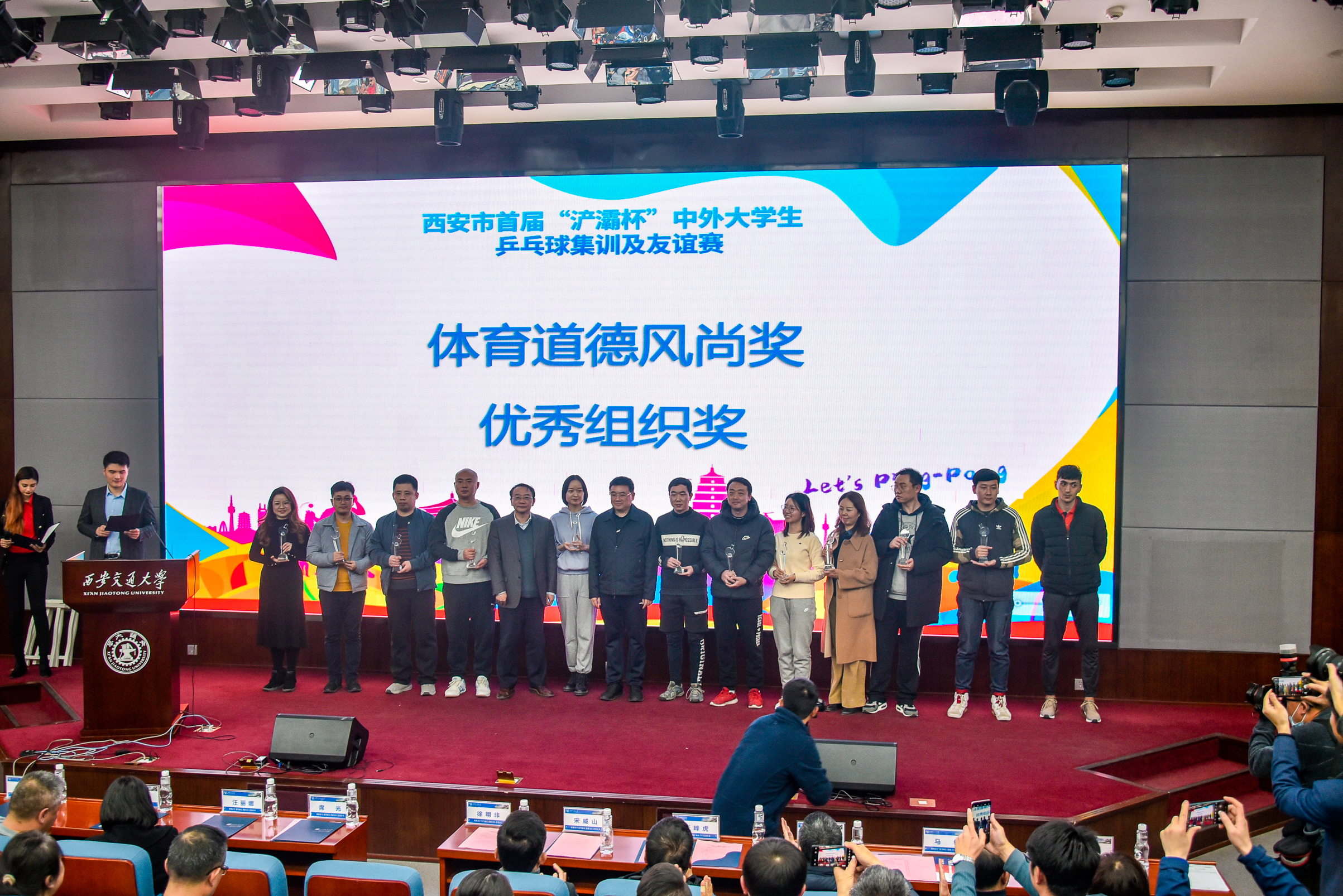 11月28日,以“相约小乒乓、共融大世界”为主题的西安市首届“浐灞杯”中外大学生乒乓球集训及友谊赛交流活动闭幕式暨颁奖典礼在西安交通大学举行,经与其他10所高校代表队的激烈角逐,我校乒乓球队获得男子单打第二名、女子单打第三名、男子团体第五名的佳绩,德赢·vwin体育获优秀组织奖。