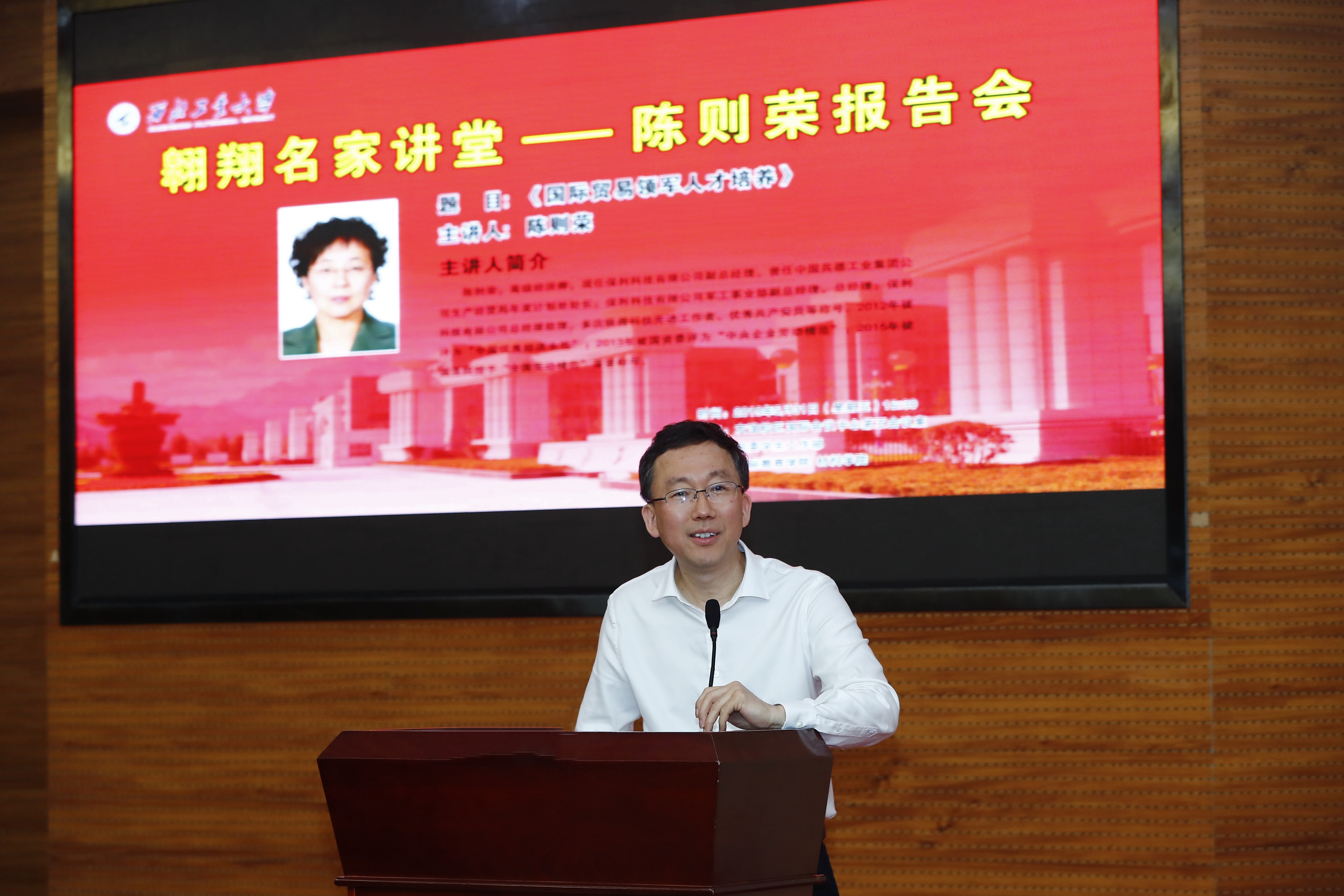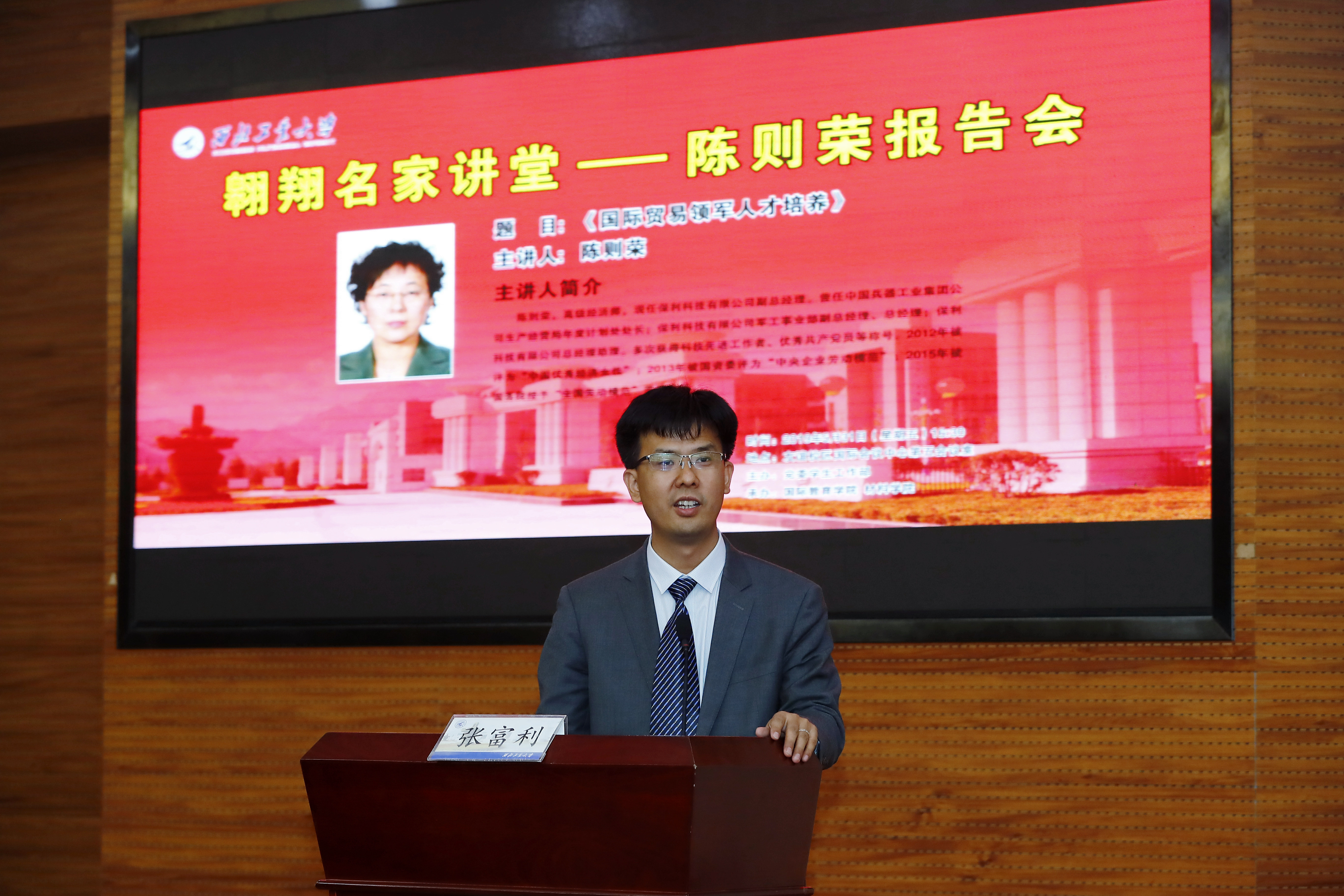 2019年5月31日下午16:30,保利科技有限公司副总经理陈则荣做客我校“翱翔名家讲堂”,在友谊校区国际会议中心第五会议室,为西工大师生们带来题为“国际贸易领军人才培养”的专题报告。报告会由国际合作处处长兼国际教育学院院长张富利主持。