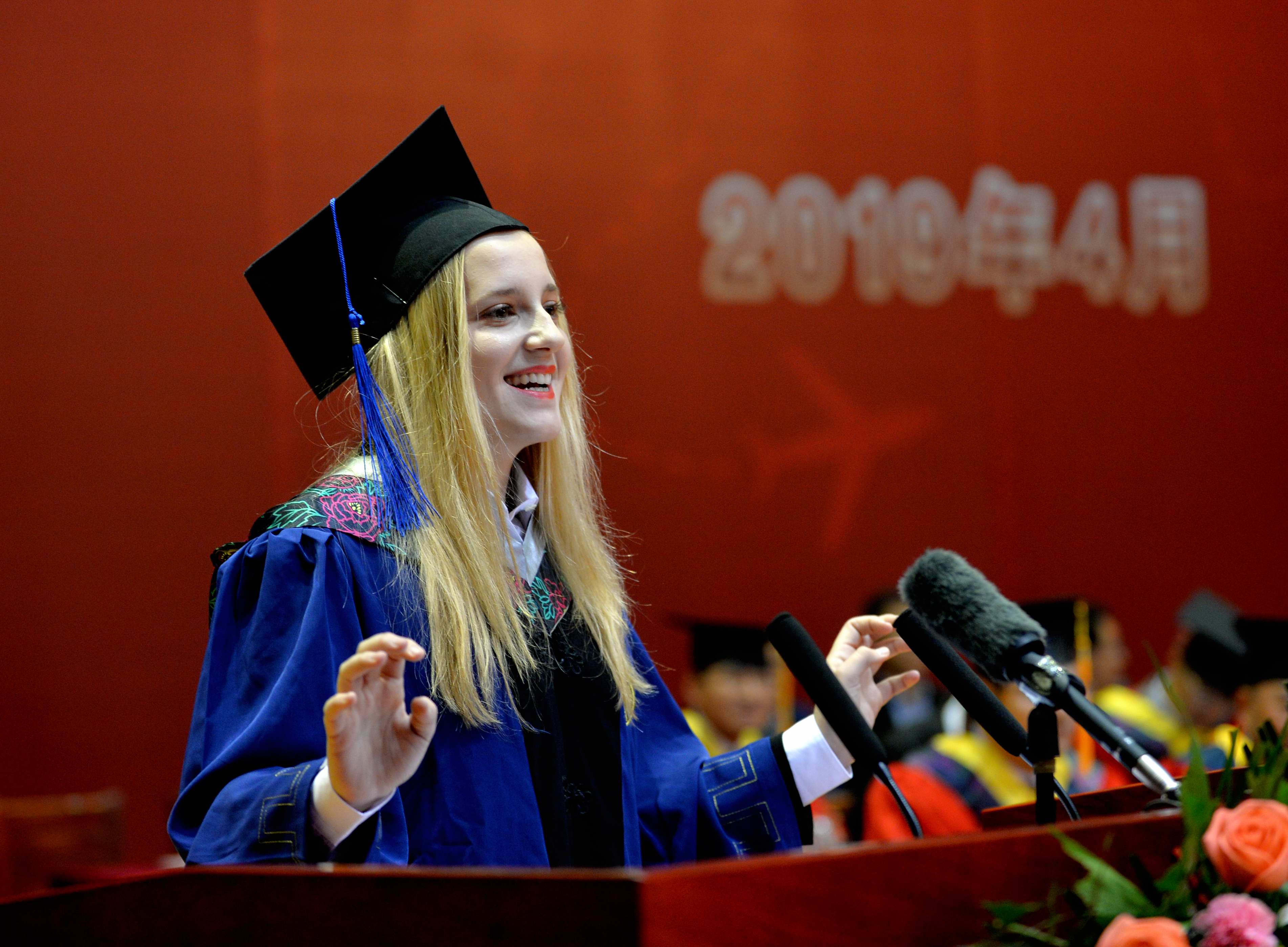 二、 讲精彩故事,育优秀人才——组织留学生代表在毕业典礼上“做发言”、“走红毯”。