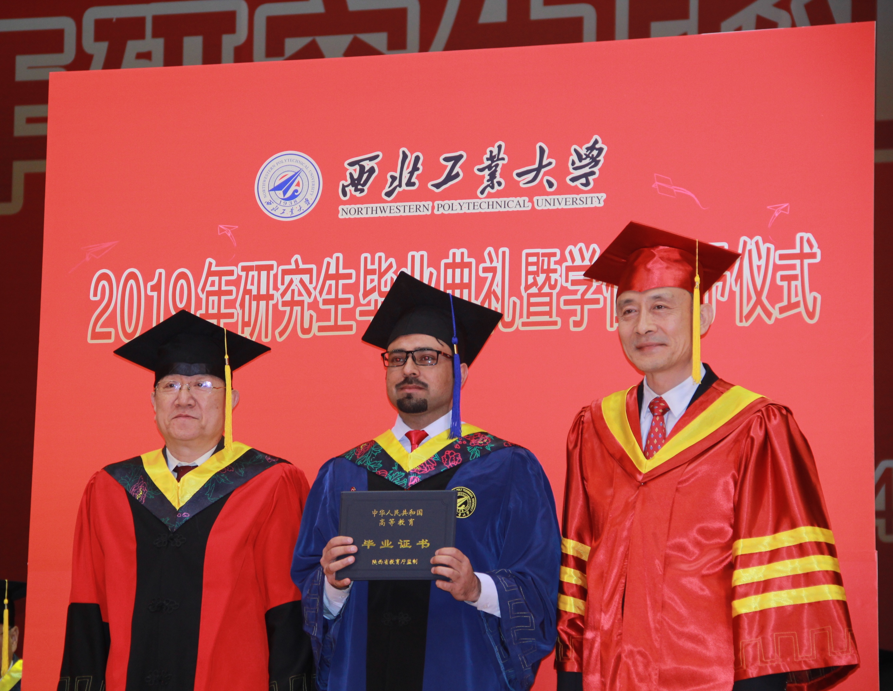 组织留学生讲好工大故事,以积极状态走向社会。扎实做好优秀毕业生评比工作,树立典型榜样,激励学生努力奋斗。4月2日下午的毕业典礼上,来自意大利的留学生代表瑞丽发言,她表示将用所学知识建设两个国家、传递两国文化,将母校“公诚勇毅”的种子带到自己的家乡并撒遍世界各地,受到校长点赞。泽山阿里作为优秀毕业生代表和导师一起在热烈的掌声下走过红毯,接受拨穗,并与书记、校长一起合影留念。
