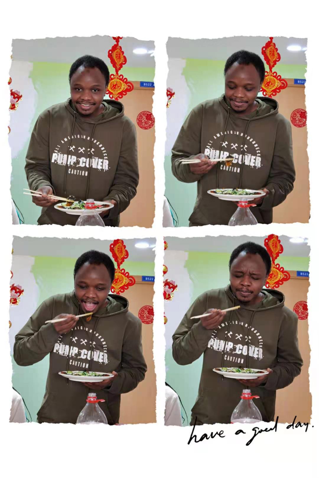 “今天给大家做了我们的家乡菜,还能吃到这么多美味的中国菜,能和大家一起过年,我非常高兴。”