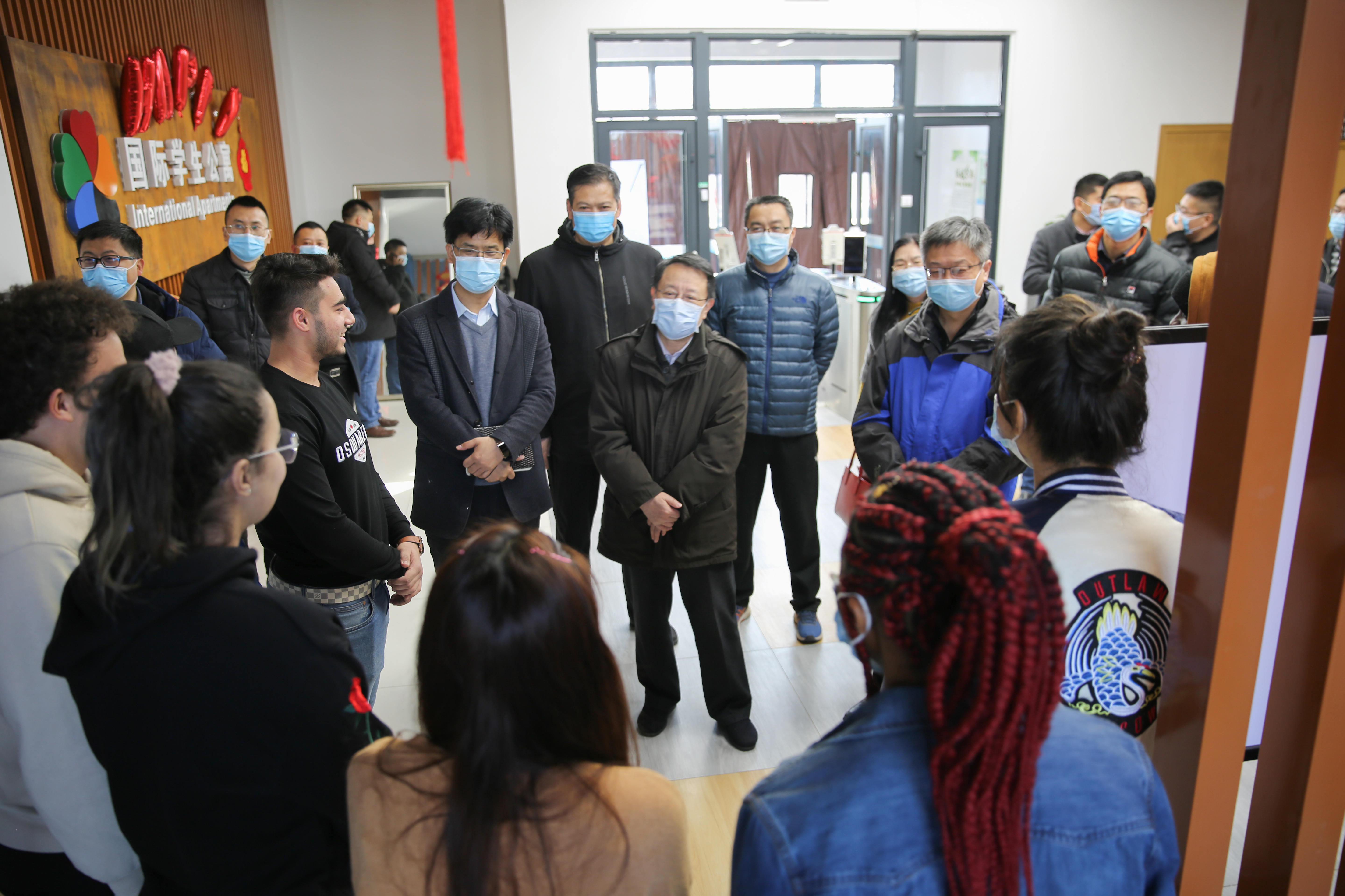 2月1日上午,校党委书记张炜一行来到长安校区海天苑留学生公寓,在农历新年来临之际,看望在校留学生,检查寒假期间疫情防控工作。校长助理王宇波和国际教育学院院长张富利等陪同慰问。