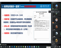 教学督导、国教院老师进入各类教学平台,直接参与网络课堂开展听课、巡课。他们不仅关注教师授课、师生互动、学生到课和学习效果等情况,还关注线上课程教学设计、教学形式和教学平台的运行情况,并为改进教学方法、提高在线教学效果、提升教学质量提出切实有效的意见和建议。