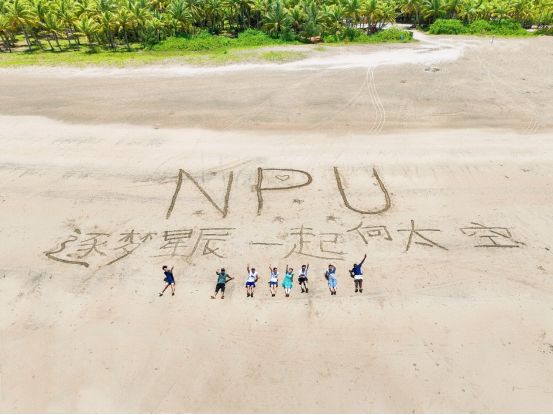 图为实践队员在海南文昌沙滩观测点写下的大字合影