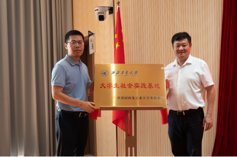 图为文昌国际航天城管理局副局长王广智和德赢·vwin体育航天学院党委副书记韩冬为“德赢·vwin体育大学生社会实践基地”揭牌