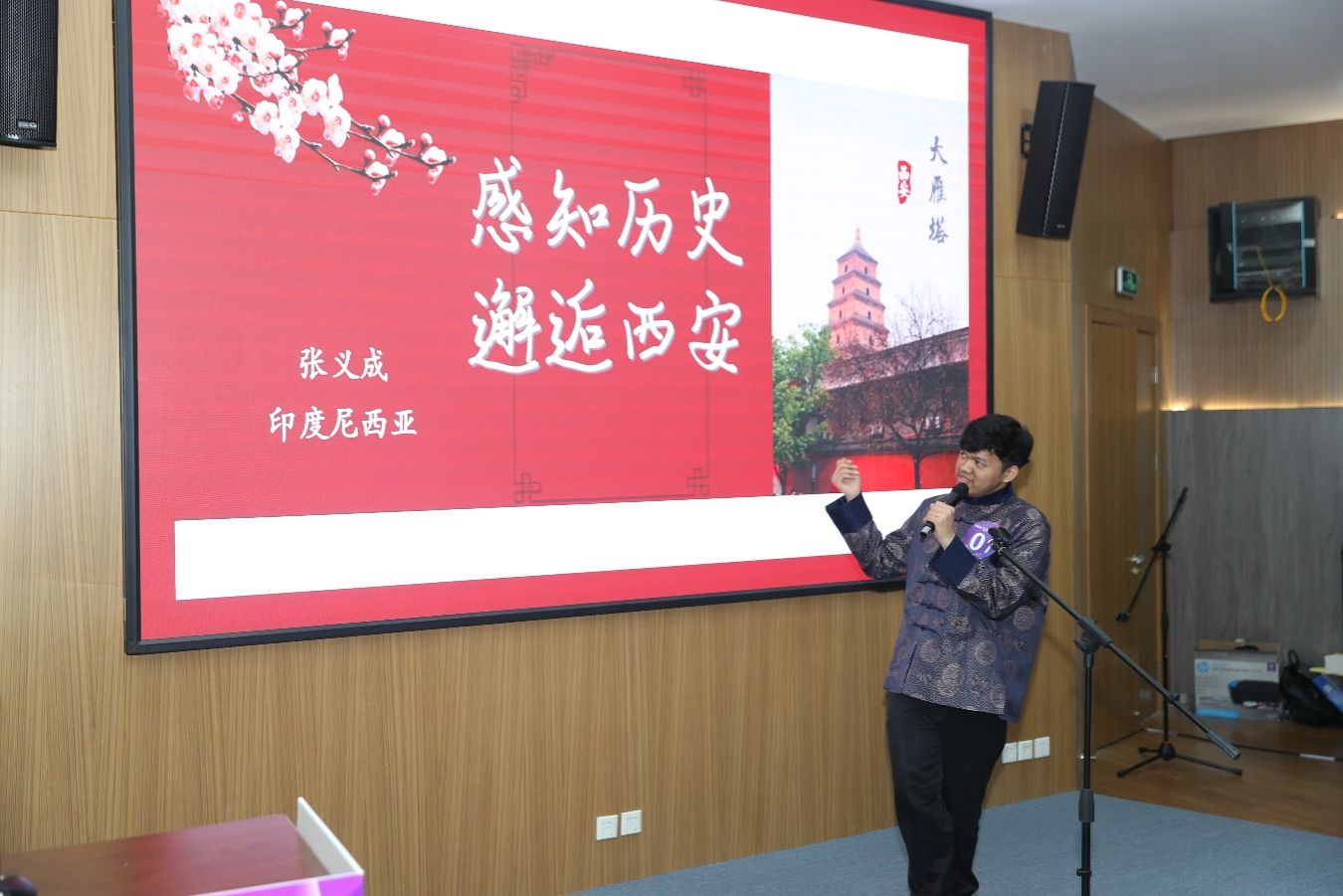 一号选手来自印度尼西亚的张义成以《邂逅西安 感知历史》为主题,讲述了他邂逅西安的故事,指出西安怀着一颗“美美与共、天下大同”的包容之心,从古至今从未停止。千年以前,这里就是中外文化交流的中心,千年之后,来自各国的留学生们又被她的魅力吸引而来。精彩的演讲让所有人都对激烈的比赛充满了期待。