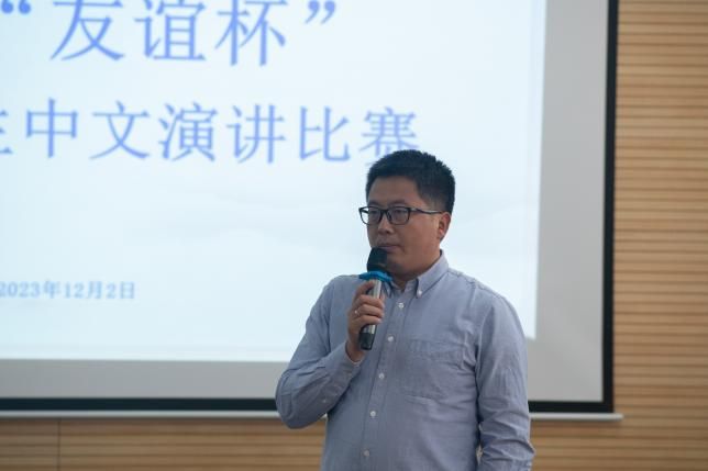 国际教育学院副院长李自伟首先对参加首届“友谊杯”中文演讲大赛的十位选手表示祝贺。表示希望大家坚信眼里的光,心中的梦,脚下的路,与“一带一路”同行,和“留学工大”共进步,与大家一起努力学习中文,提升演讲能力和综合素质,学习中国文化和专业知识,在追求卓越的道路上不断前行。