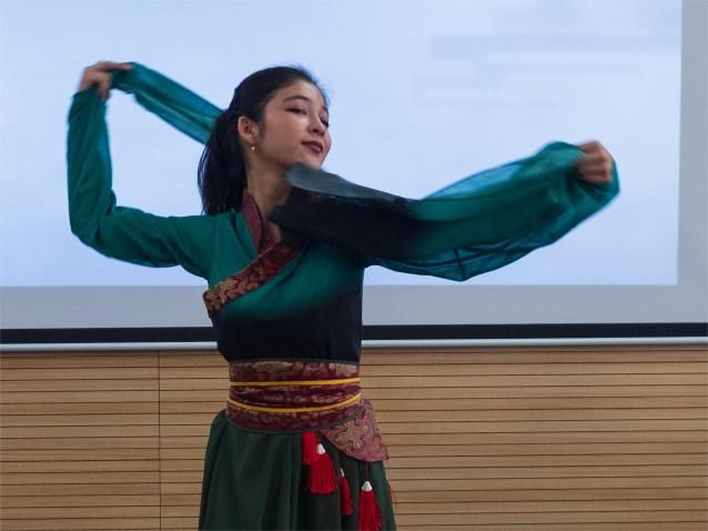 国际教育学院大一新生佳琪以一曲舞蹈《踏春》为比赛拉开序幕。