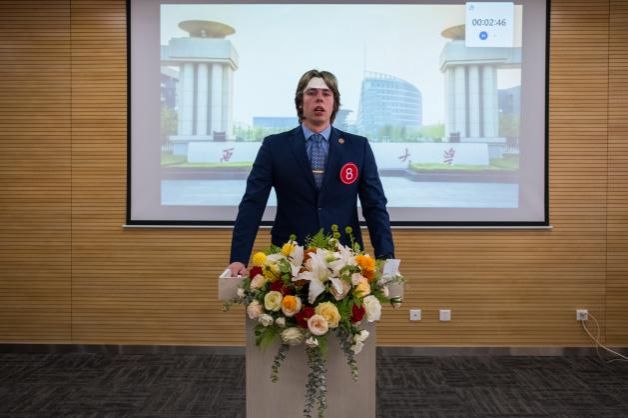 汉语预科生刘文浩结合自己在摩洛哥参与海水淡化项目的具体案例,阐述了“一带一路”倡议带来的发展机遇,未来他将继续在我校攻读硕士学位,寻求更多合作发展的机遇。