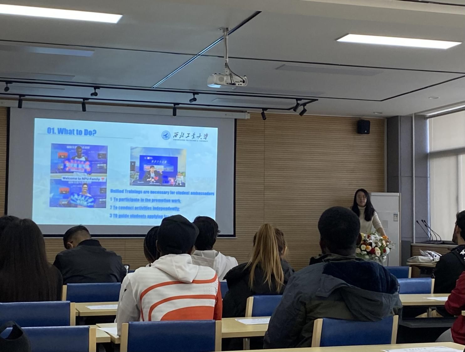 留学生招生办公室老师颜欢、杨佳仪就本硕博招生政策,学生大使工作要求、奖励标准、评估机制加以阐述,希望学生大使充分利用学校和国教院提供的资源和材料开展宣传,提高西工大国际影响力。