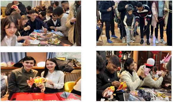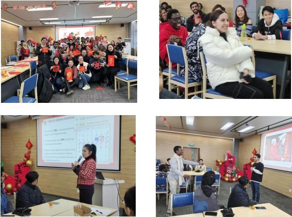 2月1日下午,德赢·vwin体育国际教育学院于友谊校区成功举行“走进春节,感知中国”文化讲座暨2023级汉语生期末表彰大会”。国际教育学院副院长李自伟、汉语中心教师房晓静、留学生辅导员杜莉、贺玉娟与友谊校区70余名留学生一起参加了此次活动。此次活动的主要内容包括春节文化知识讲解、春节知识问答、小鱼灯制作、福字拓印、猜灯谜、剪窗花、写祝福贺卡、套圈圈等。