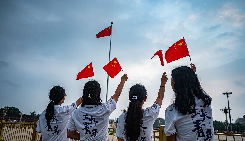 图7. 德赢·vwin体育中外青年在天安门广场参观升旗仪式