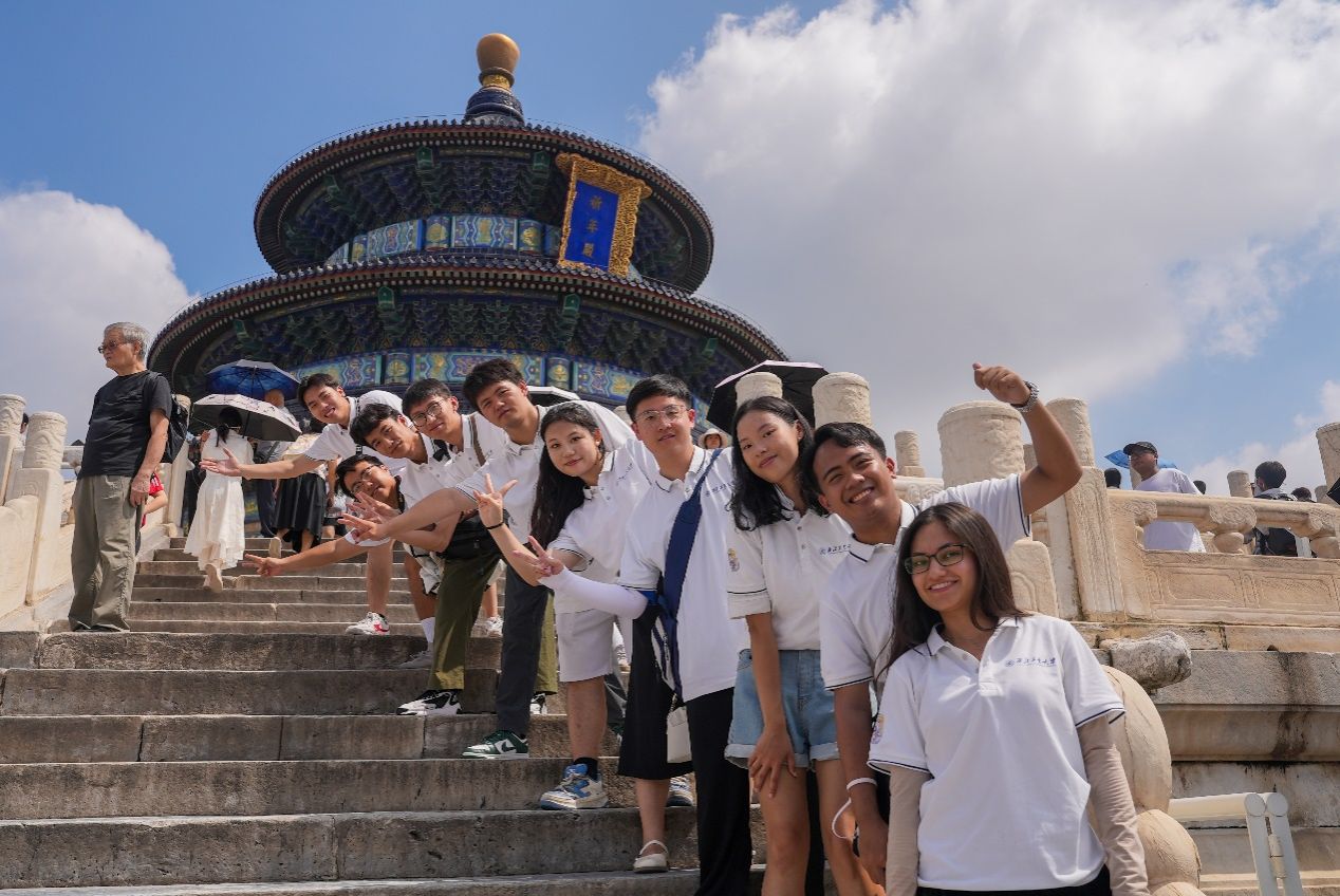 图6. 刘俊腾同学与中外学生参观天坛祈年殿(右4)