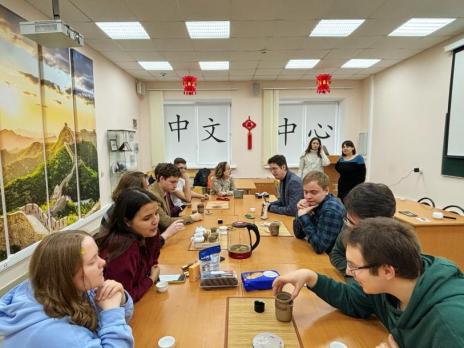 在中国,人们以茶会客、以茶待友。同学们在茶文化活动中细致了解了中国茶历史与行茶仪式,感悟平静、自然、和谐的茶精神。
