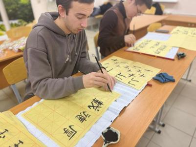 自开学以来,中国文化第二课堂也在喀山汉语中心如火如荼地展开,同学们通过丰富的文化活动解读中国、感悟中国。在书法体验课上,同学们了解了汉字的起源、结构与造字法,在领略中华文明传承的同时促进汉语学习。