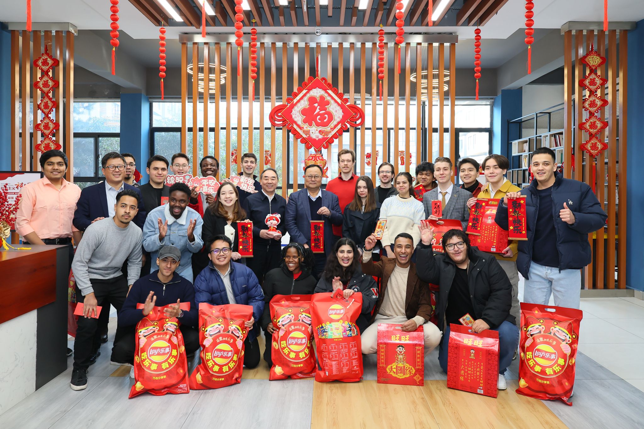 随后,宋保维和岳晓奎一起向留学生发放春节慰问品,为留校留学生们送上新春祝福。