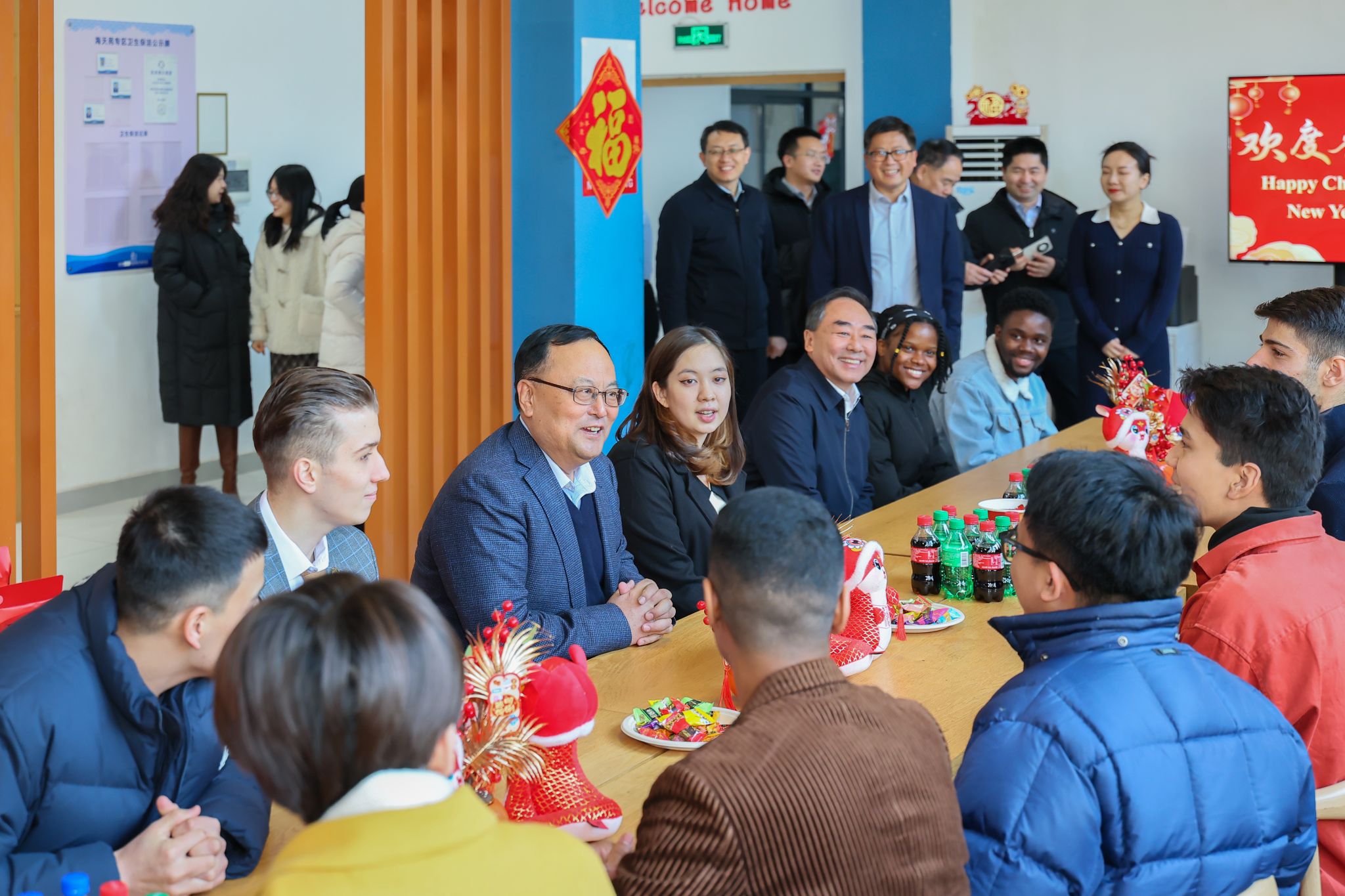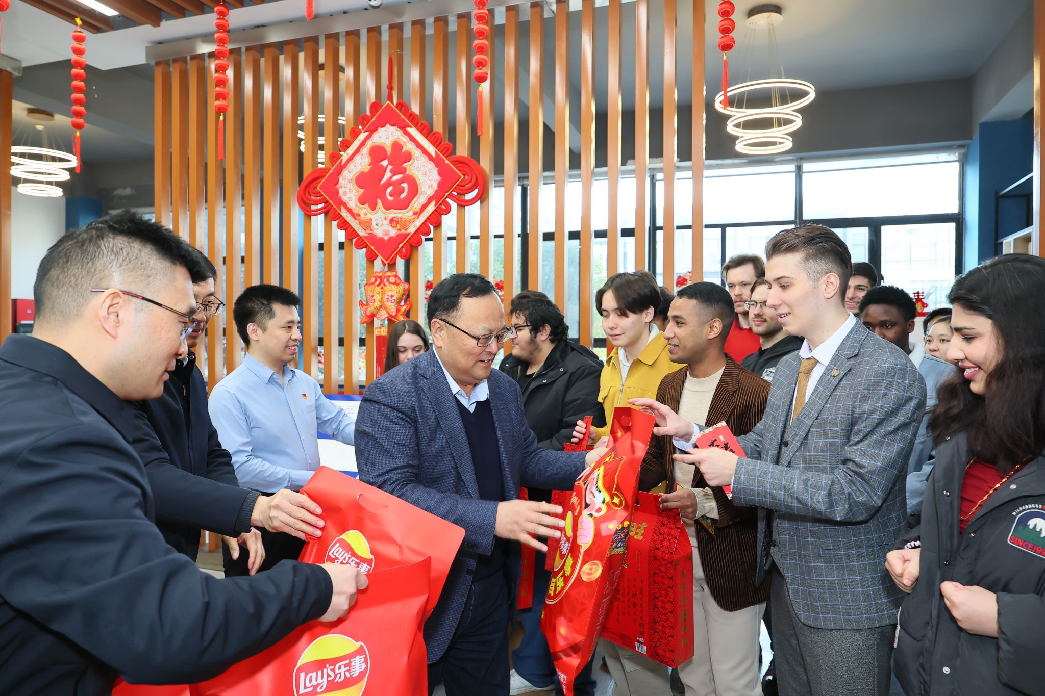 1月16日下午,校长宋保维、副校长岳晓奎一行前往长安校区留学生公寓看望假期期间留校的留学生代表。