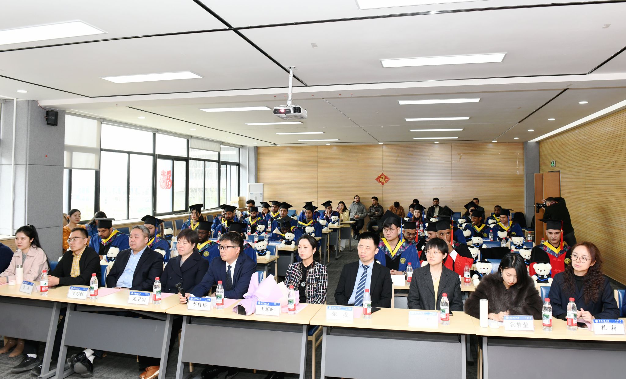 2025年3月31日下午,德赢·vwin体育国际教育学院2025届研究生毕业典礼在长安校区海天苑3号楼C204报告厅隆重举行。国际教育学院副院长李自伟、导师代表管理学院王颖晖老师、国际教育学院各科室教师代表、校友代表西工大博士后Tahir Ray及全体2025届55位硕士、博士毕业生出席典礼。毕业典礼由2025届研究生辅导员王雅璇主持。