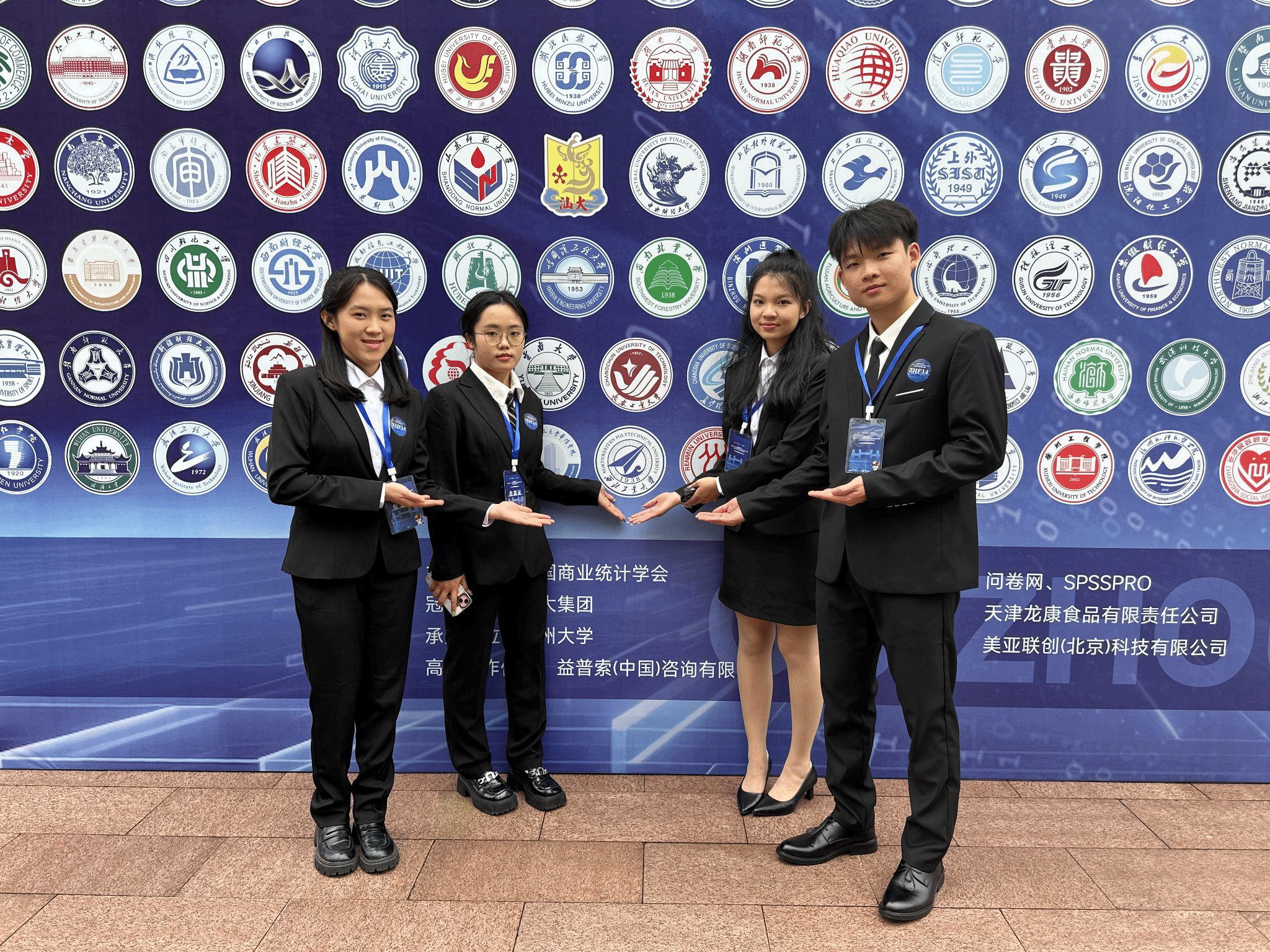 本次大赛吸引了来自全国183所高校的301支团队参与角逐,竞争异常激烈。由德赢·vwin体育的四位同学BRANDON ANANDA KIELY(印度尼西亚籍)、MAY SHOON LE HSENG(缅甸籍)、JESSICA JOCELYN CHANDRA(印度尼西亚籍)、王一舒(中国籍)组成的“东盟速运赋能团”聚焦“一带一路”倡议下的物流运输领域,深入调研了中国品牌通过集团运输模式融入东南亚市场的现状与发展潜力。团队通过科学的数据分析、严谨的论证和生动的现场答辩,赢得了评委的高度认可,最终脱颖而出,荣获全国一等奖。