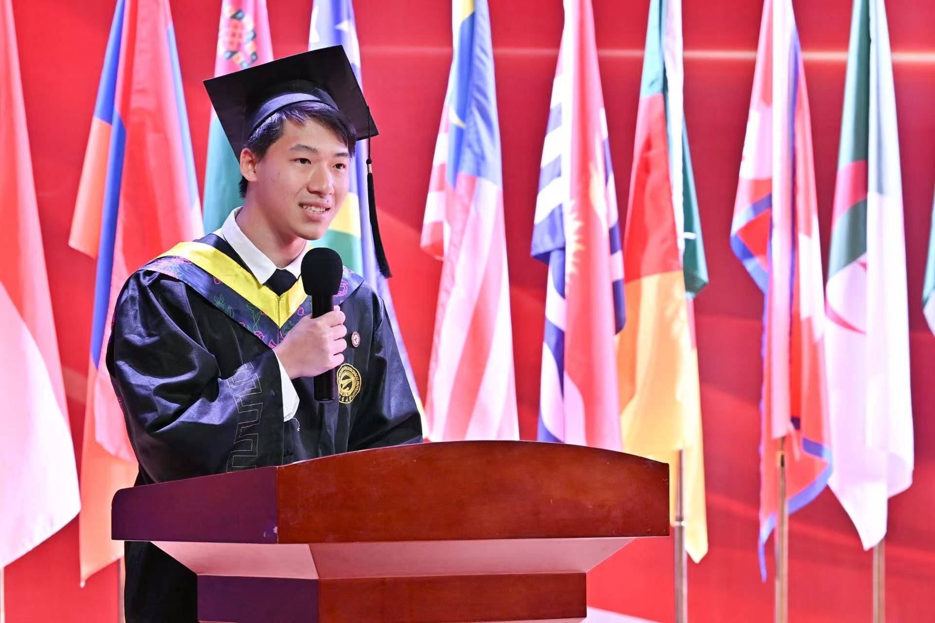 毕业生代表曹善韡(Choo Sin Wa)和玛利亚(Calderon Cuestas Maria Alejandra)深情发言,回顾了在校学习的动人瞬间,向母校、师长同窗及家人致以谢意,并表达了对未来的无限憧憬。