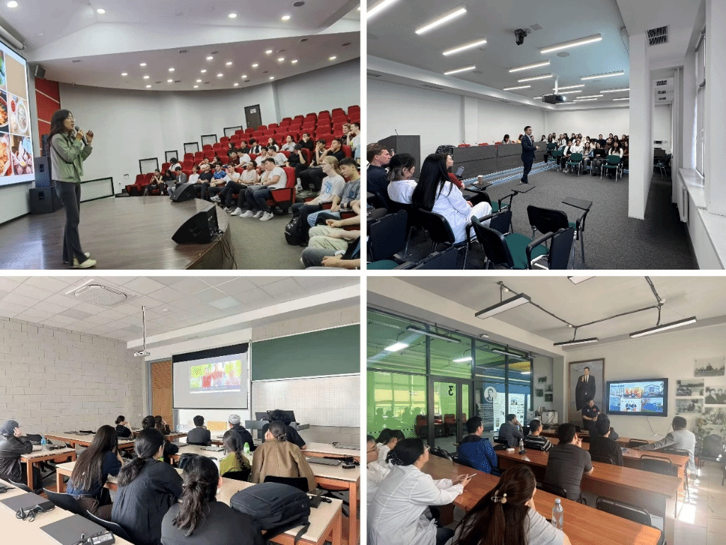 国际教育学院与哈国大招生办公室协同构建了多语种、全平台的招生体系,通过中英俄哈四语简章、WhatsApp咨询账号、落地广告、社交媒体、直播宣讲等方式,覆盖超过1000个意向生源。1月起,招生团队深入萨特巴耶夫大学、国际信息技术大学等高校线下宣传,5月至7月坚持每周直播答疑,极大增强了意向生源对分校相关专业的了解程度。