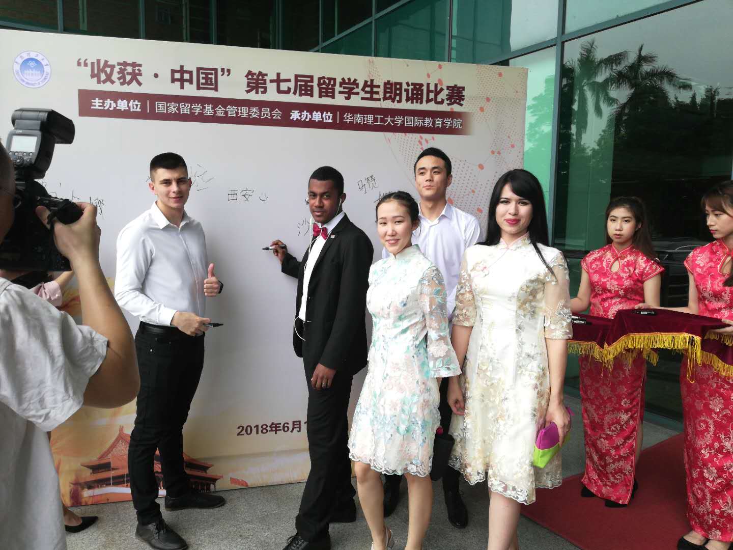 2018年6月1日,由国家留学基金管理委员会主办的“收获?中国”第七届留学生朗诵比赛在广州华南理工大学举行,中国高等教育学会外国留学生教育管理分会理事长刘京辉、副理事长安然出席比赛。来自浙江大学、重庆大学、哈尔滨工业大学、同济大学、东南大学以及我校和东道主华南理工大学共12所国内著名高校的40多名留学生参加比赛,最终,东道主华南理工大学和浙江大学赢得一等奖,我校和重庆大学、武汉大学、南方医科大学获得二等奖。