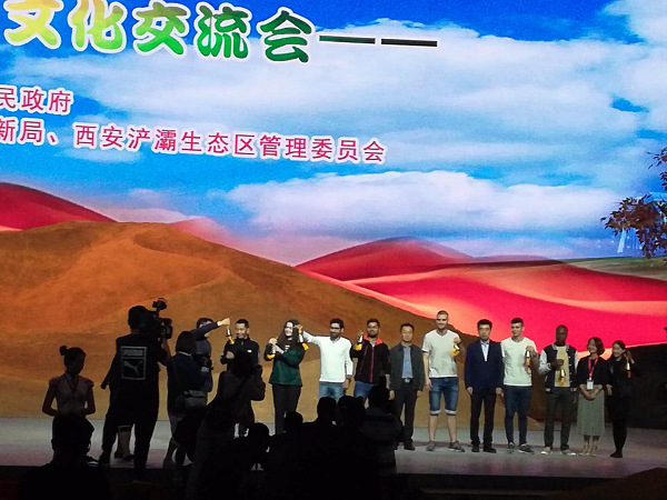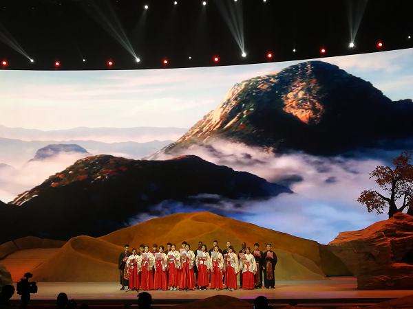 表演开始之前的热场活动中,我校8名留学生代表上台领取活动主办方赠送的驼铃。接下来,我校来自赞比亚、布隆迪、马来西亚等国家的20位留学生为大家献上一首《送你一个长安》,用歌声表达了对中华文化独特魅力的敬佩。