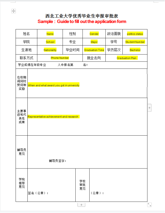 Please send the soft copy to vicky-iso@nwpu.edu.cn. The mail subject shall be: student ID number + 2022excellent undergraduate application.