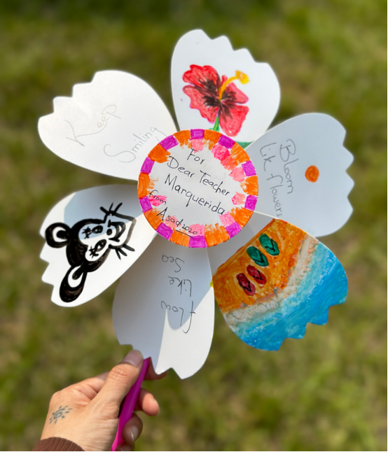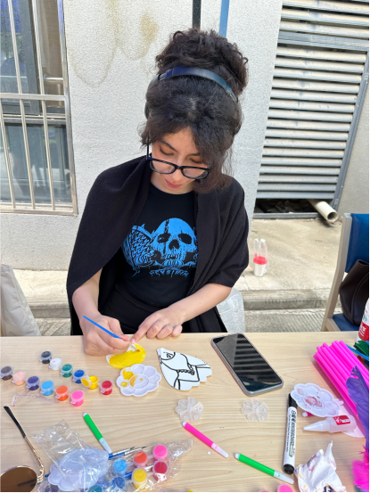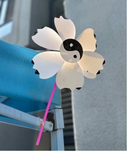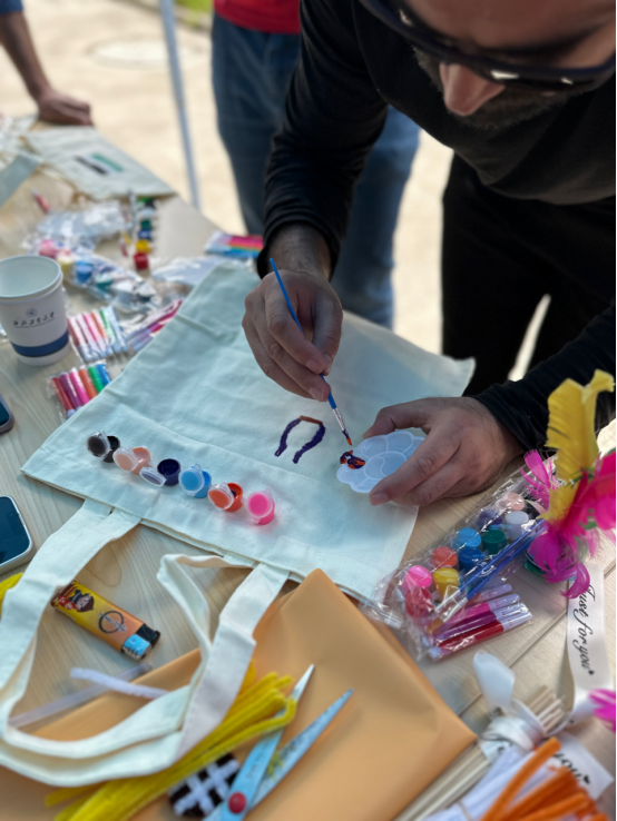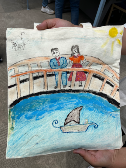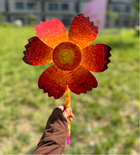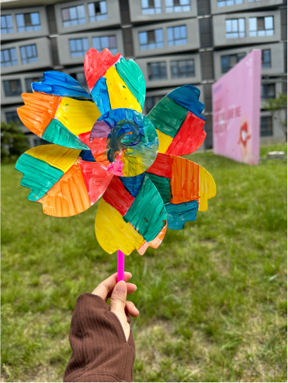 心灵手绘中,同学们可用颜料或彩笔在帆布包及风车上画出自己喜欢或代表自己心情的图案,通过画画来纾解压力,释放情绪,获得心灵的平静