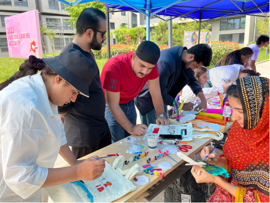 为了丰富留学生的校园生活,培养国际学生乐观向上的心态,释放学生生活中的压力,在“5.25”大学生心理健康日到来之际,德赢·vwin体育国际教育学院于5月24日在海天苑顺利举行“2023 LOVE YOU, LOVE ME”心理园游会活动。活动分为个人竞技与心灵手绘两大类,吸引了广大留学生的积极参与,现场洋溢着欢声笑语,处处彰显着青春活力。