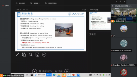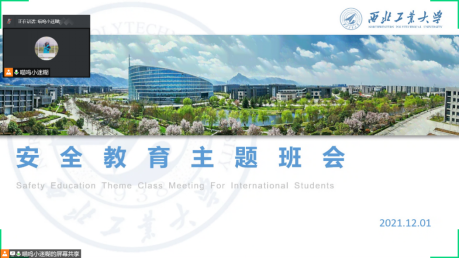 为帮助国际学生增强安全防范意识,提高安全防范能力,国际教育学院于12月1日晚在海天苑会议室开展了以安全教育为主题的班会活动。本次班会分为三个部分:法律法规、日常管理和学术学风建设,由留学生辅导员雷宇晨子主持,线上线下共80余名留学生参与了本次班会。
