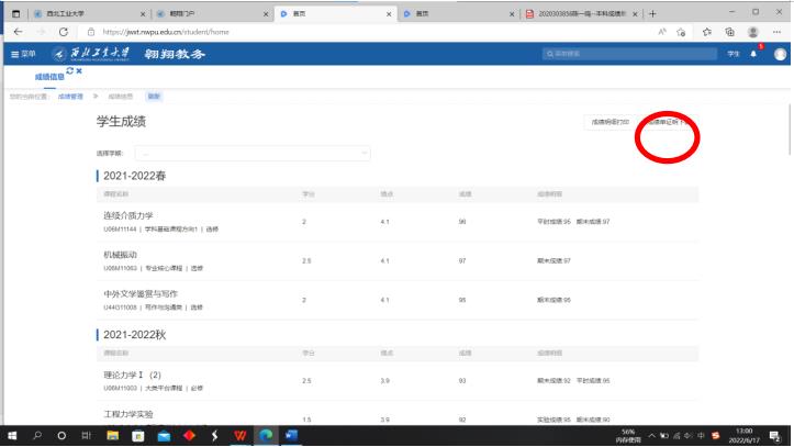 3.进入成绩页面后,点击右上角成绩单证明下载