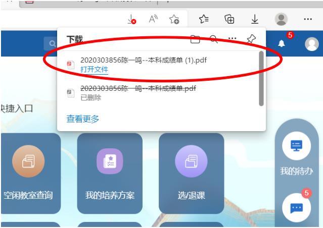 After entering the score page, click the Transcript Certificate in the upper right corner to download.